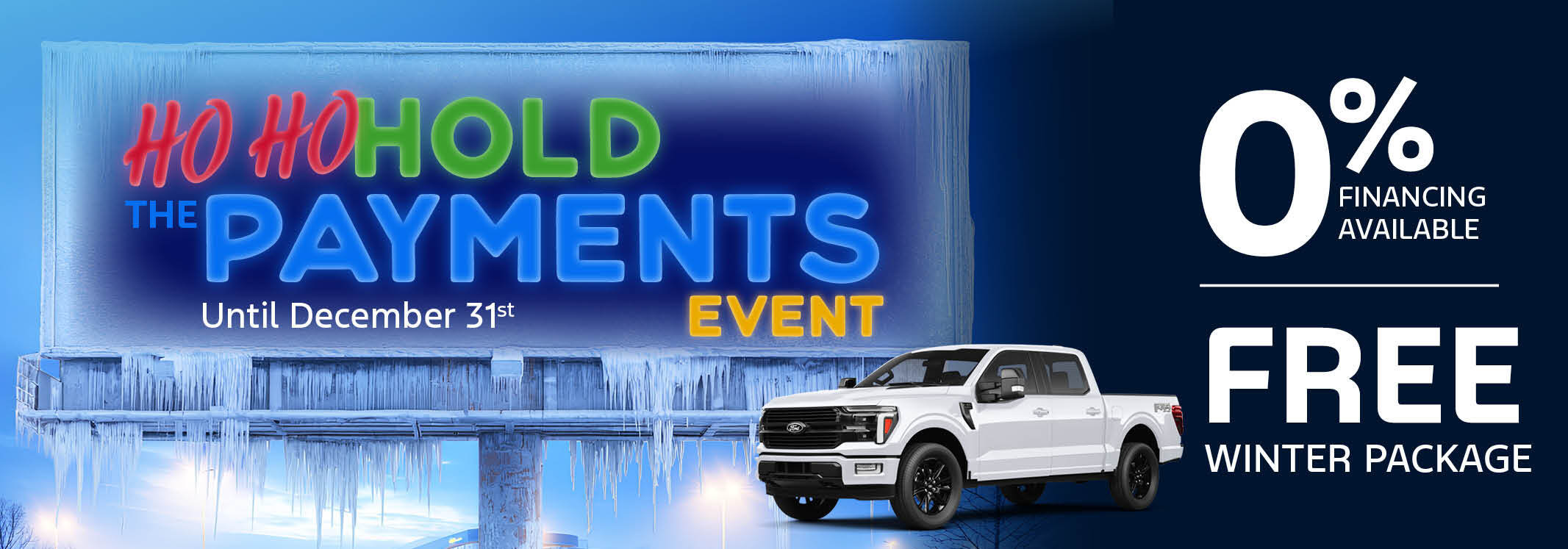The Ho Ho Hold The Payments Event lets you finish the year strong with big savings, low payments, and zero payments due until March 26th. It’s the perfect time to jump into a new vehicle and kick off the new year feeling ahead.